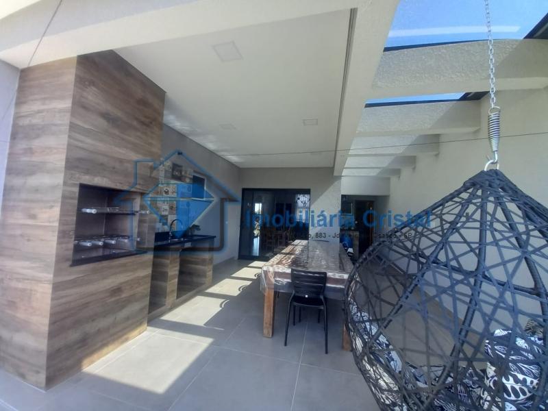 Linda casa térrea, iluminada e com designer super moderno! Com 3 dormitórios, sendo 2 suítes, 3 banheiros, sala de estar, sala de tv, sala de jantar, cozinha. Churrasqueira coberta, com banheiro externo Quintal gramado bem ensolarado 4 Vagas de garagem, sendo 2 cobertas e 2 descobertas. Condomínio com área de lazer e portaria e segurança 24 horas.
