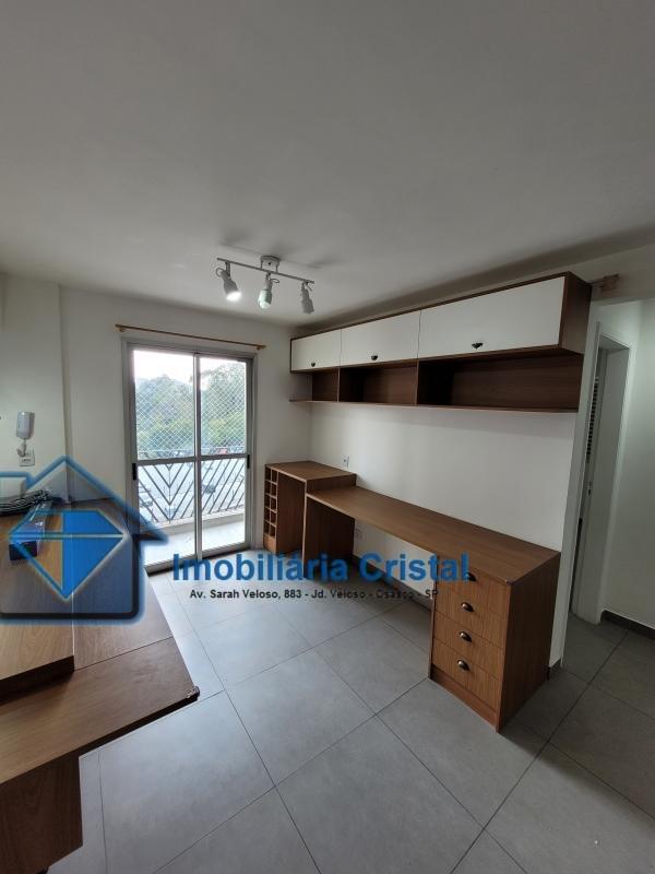 Apartamento de 04 cômodos, com móveis planejados em todos os ambientes, sendo: 02 dormitórios, sala para dois ambientes, sacada, cozinha, lavanderia interna, 01 banheiro e vaga de garagem descoberta e não demarcada.